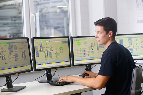 Du überwachst und steuerst die Produktion mit Hilfe von Computern und prüfst die Qualität während der Produktion sowie der Endprodukte. Du bist für den technischen Zustand der Anlagen verantwortlich und wartest Maschinen und Anlagen und behebst kleinere Störungen.